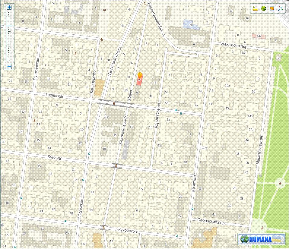 Teya, спасибо за помощь, скорее всего клиники нет на карте, потому, что дорога к ней больше напоминает лунный кратер, легковой машине, не зная фарватер точно не проехать, особенно после ливней этого лета, мой муж вобще считает, что эту улицу, не ремонтировали с войны, как историческую достопримечательность после бомбежек. Хотя, это помещение Александр Анатольевич уже арендует почти два года, его клиентам, знающим этого врача еще по работе на 7-й Пересыпской и в ветлечебнице при одесском зоопарке приходится добирать на Деволановский, преодолевая некоторые дорожные преграды. На высоких машинах, можно спуститься с Еврейской улицы, с той стороны тоже есть проезд.