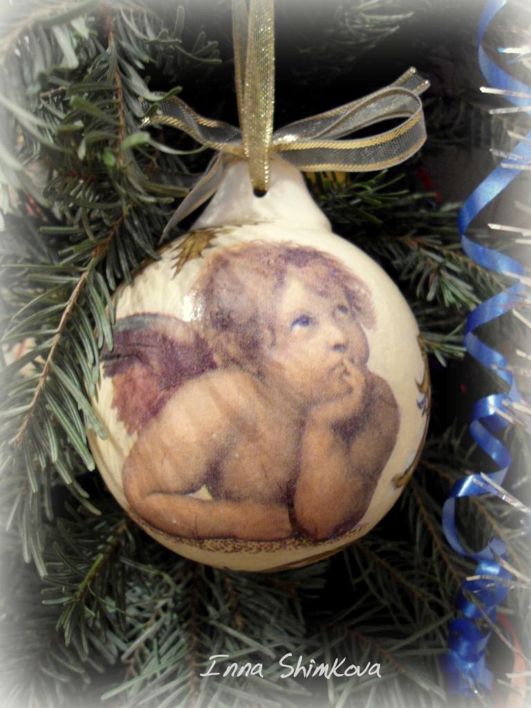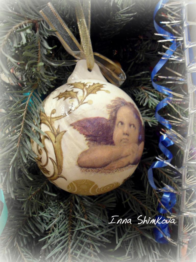 Ну и покажу ещё что было и что есть из новогоднего. Шар большой с ангелами 50грн. Подвески от 30грн.Маленького шара с мишкой внутри -нет .