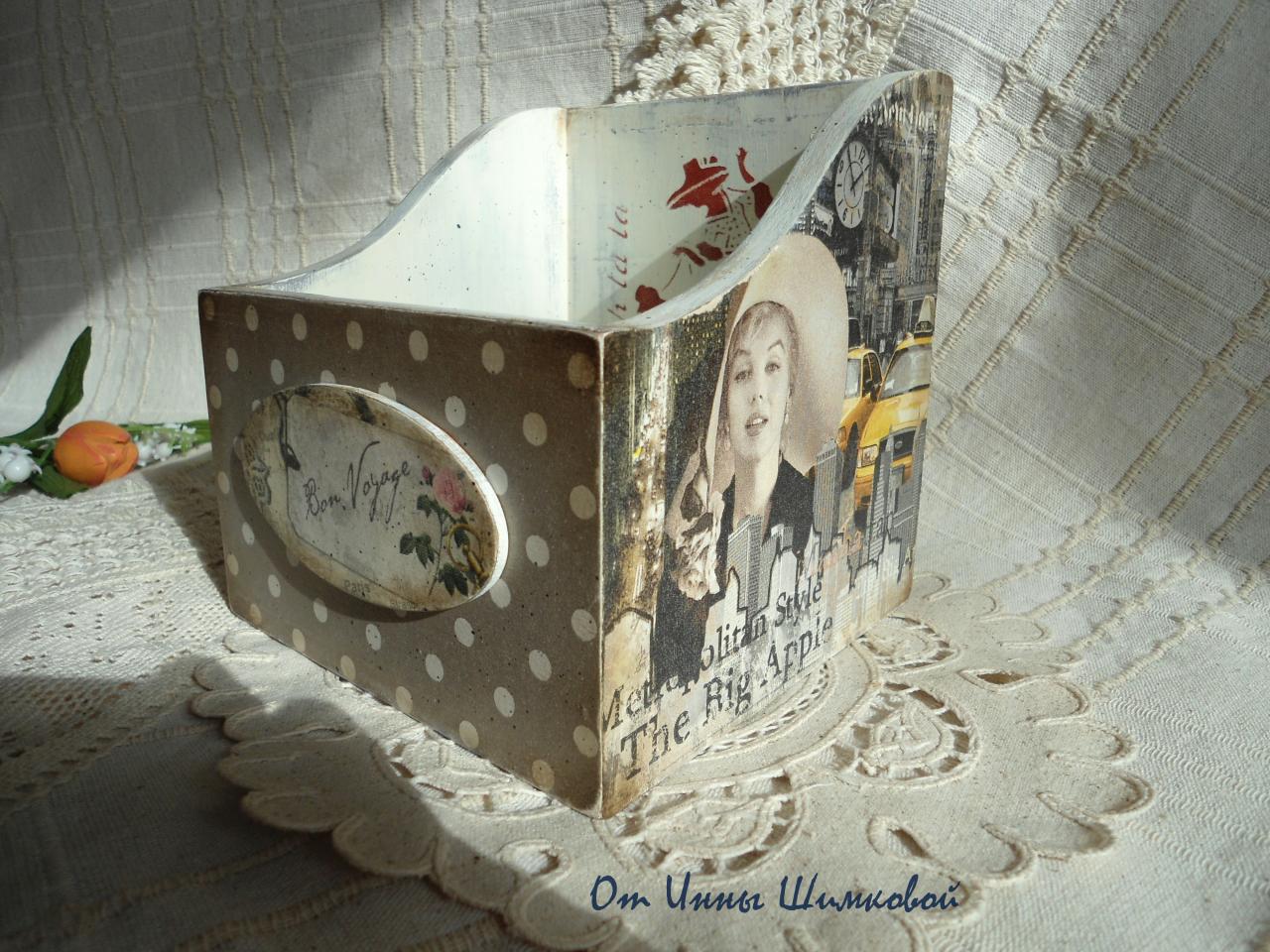 Основа -дерево, сосна.Использовались салфетки(!!!).Техники старения, морение дерева,трафетирование. Размеры длина 20см, ширина 11см, высота 15,5см. Стоимость 150грн.