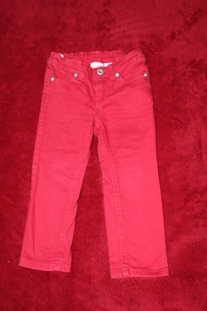 3.Джинсы Kohls красные, пишут 3Т но маломерят мы носили в 2-2.5 года, есть утяжка на поясе, камушки все на месте. цена 60 грн.