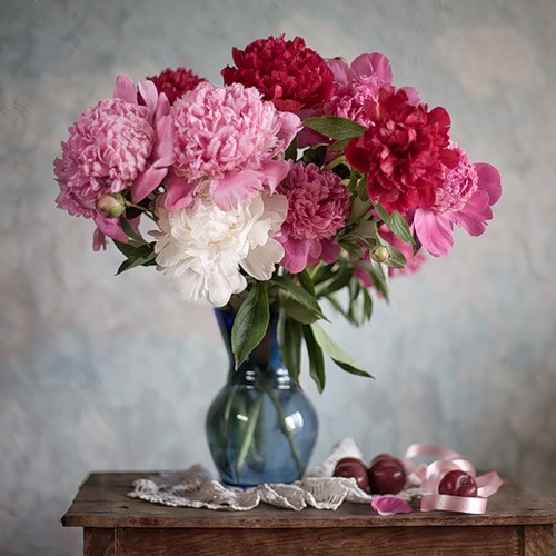 что, правда редко??? странно..... кусты просты в уходе, срезка просто божественна (как с картин эпохи барокко букеты ) разнообразие просто поражает, особенно сейчас с этими гибридами! нашла сегодня много в инете картин с пионами,завтра выложу ))) полюбуешься!