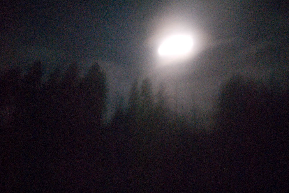 Карпаты, ночь, грязное окно поезда, полная темень. Выдержка около секунды, ISO 3200