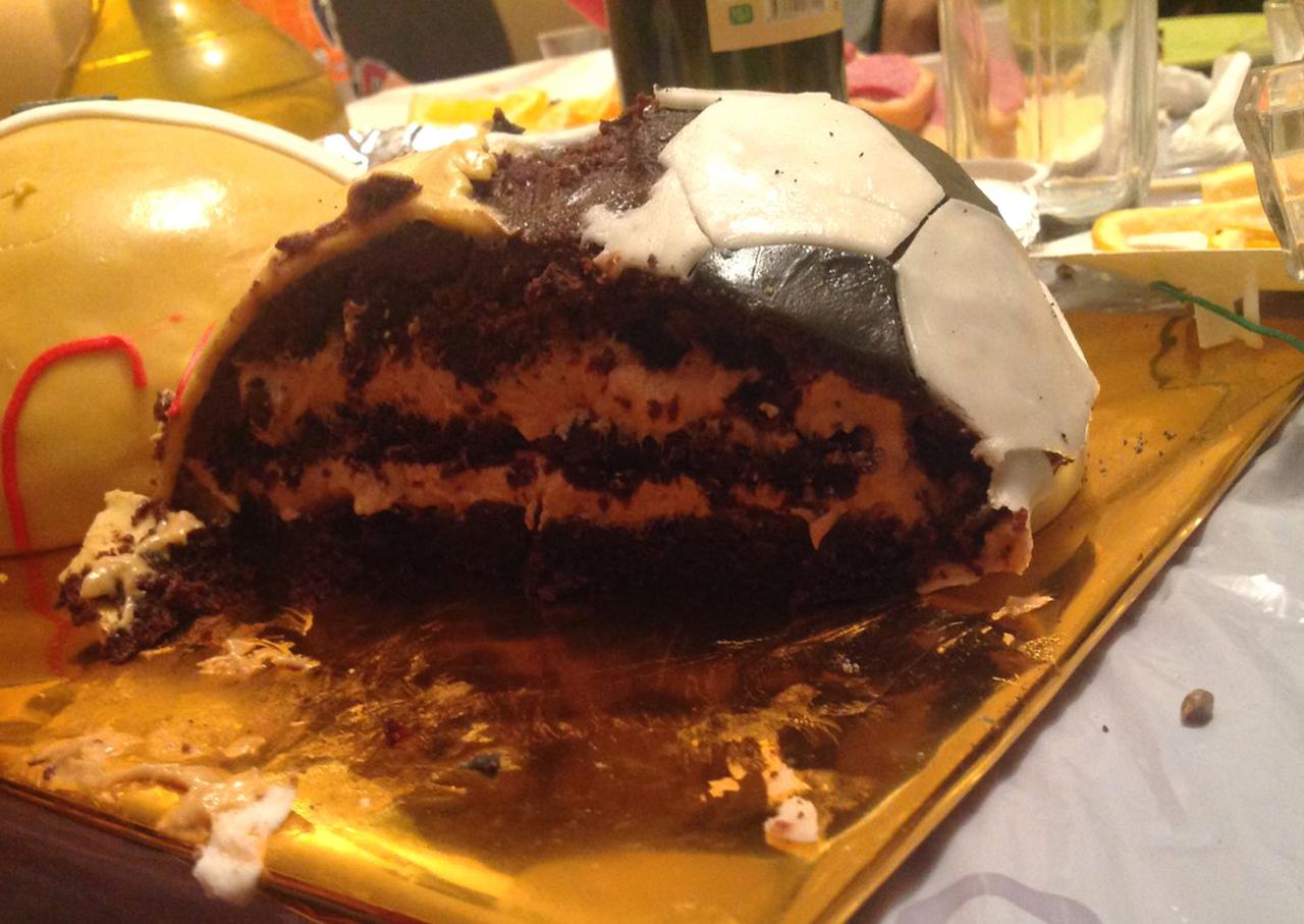 "Бюст для футболиста"Шоколад на кипятке, с карамельным кремом (на сгущёнке) и бананом. Коньячная пропитка.