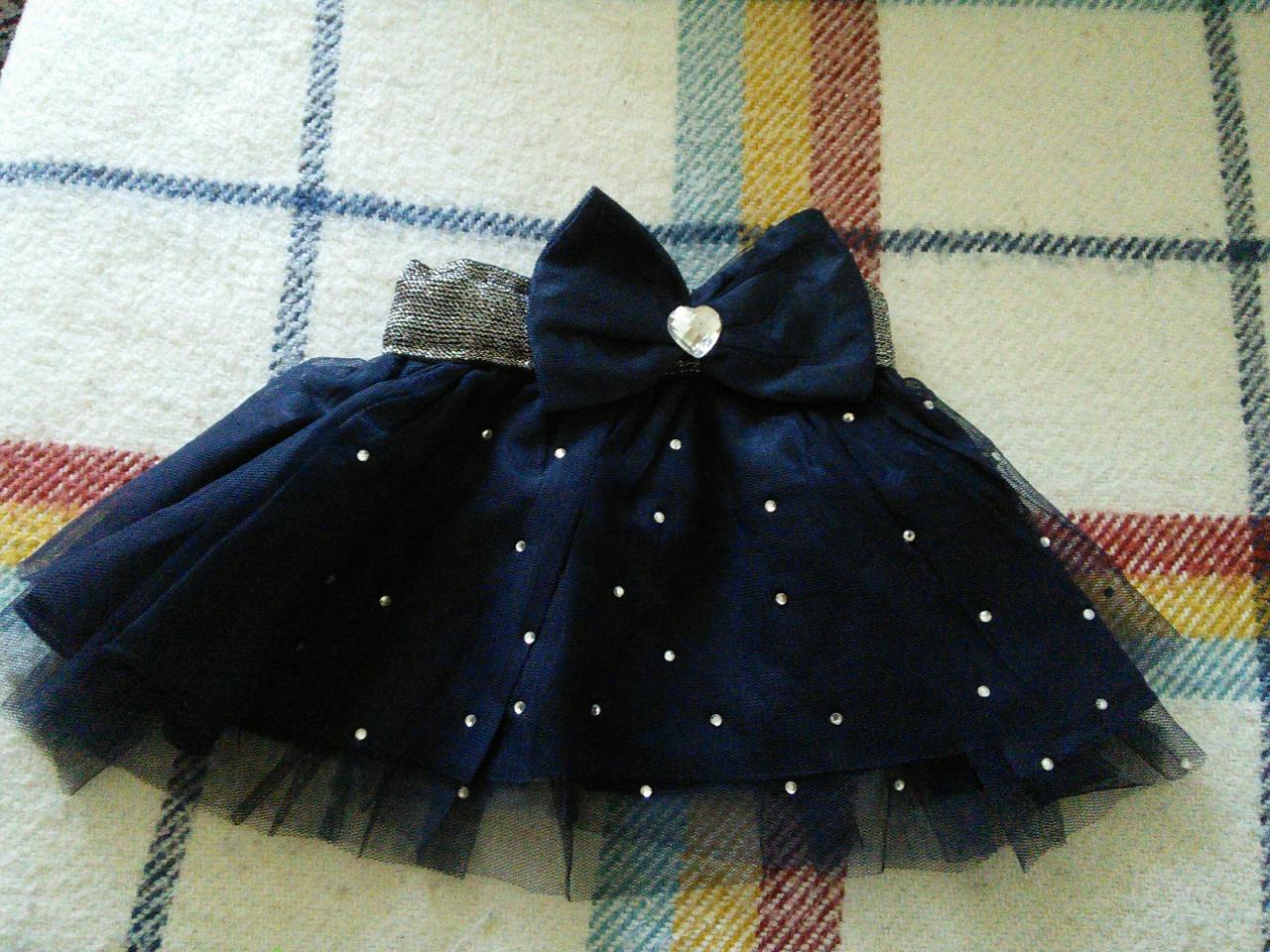 37. Юбочка из шатина с бантом, темно-синего цвета, нарядная. На девчонку от 1 до 2 лет. Заказывала с китайского сайта, пришёл не тот размер, новая, без бирки.