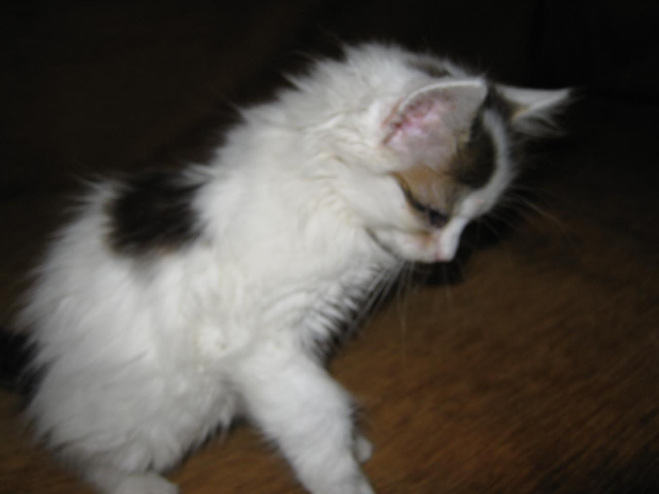 Карантин по панлейкопении у них прошел, аппетит отличный, тут все нормально, ттт. У белой кошечки изначально предполагали хламидиоз, но оказалось, что у нее просто небольшая травма глаза. И у обоих лишай на ушках. Лечимся