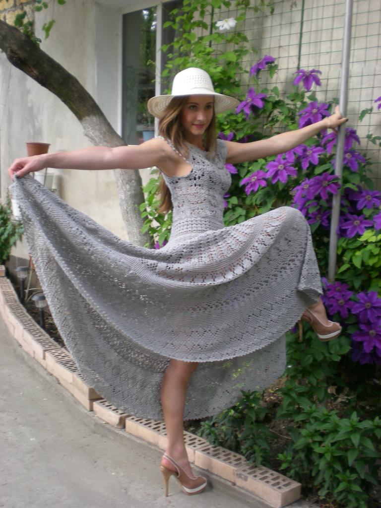 Платье-сарафан "Пепельный Ажур" - связано крючком №1 из вязальных ниток "МАК",20 моточков по 50 г - 260 м