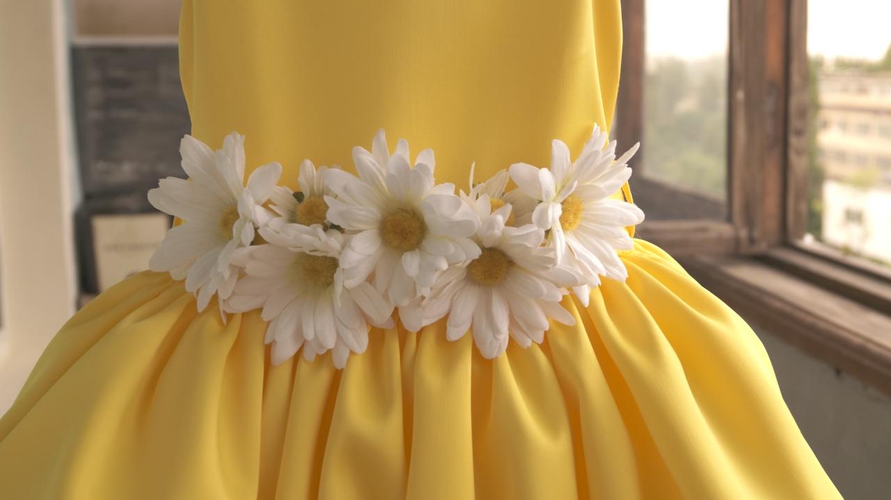 Белоснежное платье из шёлка, кружева и мягкой евросетки. В меру пышное, очень нежное. К телу ребёнка натуральная подкладка из тонкого и мягкого батиста. Застёгивается по спинке на пуговицы. Декорировано цветами (ручная работа). Возможен дополнительный декор по Вашему желанию.