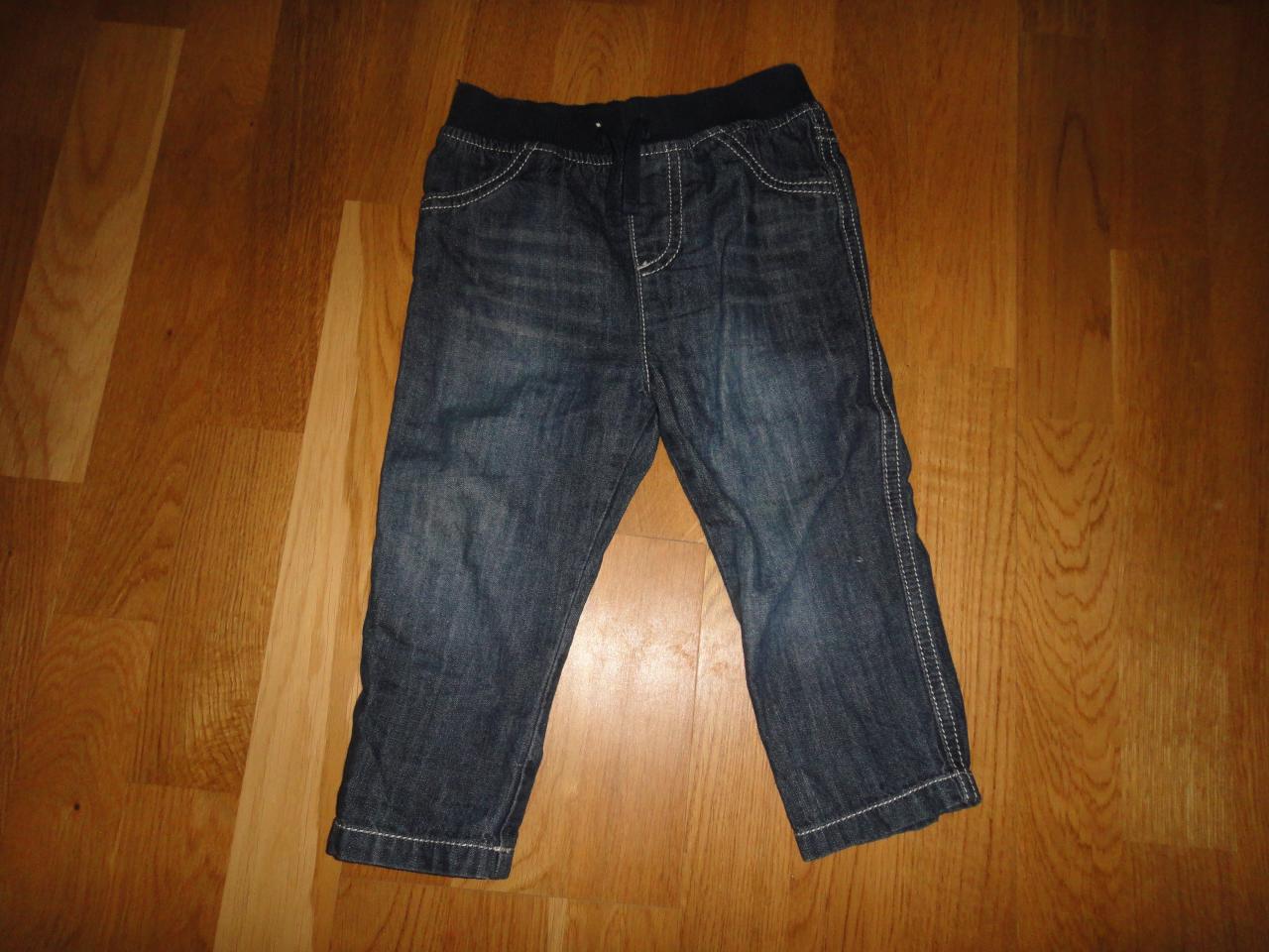Удобные узкие джинсы F&F, 12-18m. Талия на резиночке (имитация завязочек, карманов, стильная белая строчка и потертости). Джинсики не плотные, скорее средней плотности (максимум демисезон). - 100грн