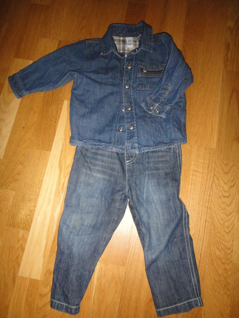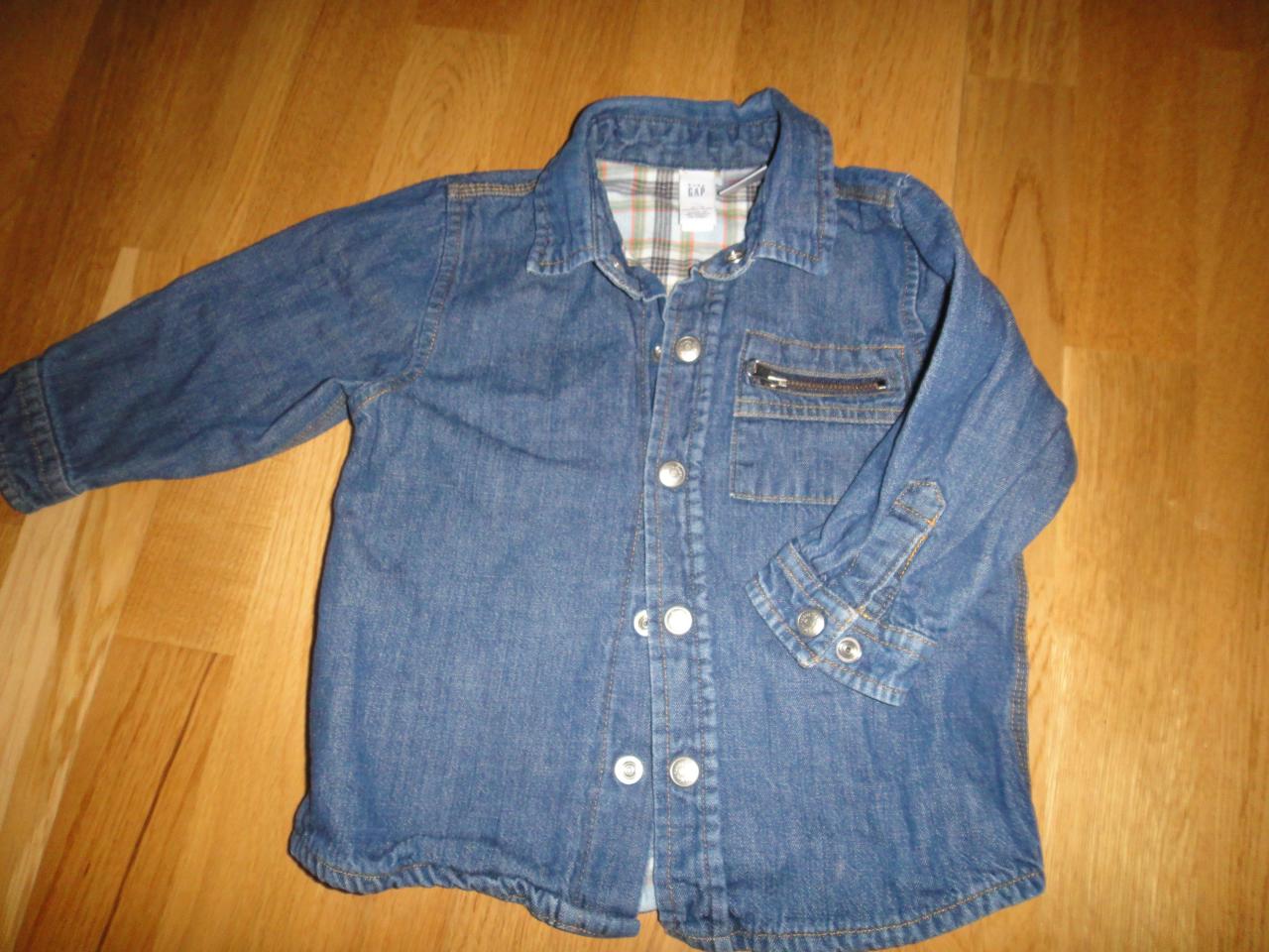 Наша любимка - теплая джинсовая рубашка Gap, 12-18m (полномерная). Она действиетльно теплая, потому что джинс плотный, подкладка тоже плотная (100% коттон) и вообще незаменимая вещь. Классная модель, удобная фурнитура (кнопки), смотрится очень стильно. - 150грн