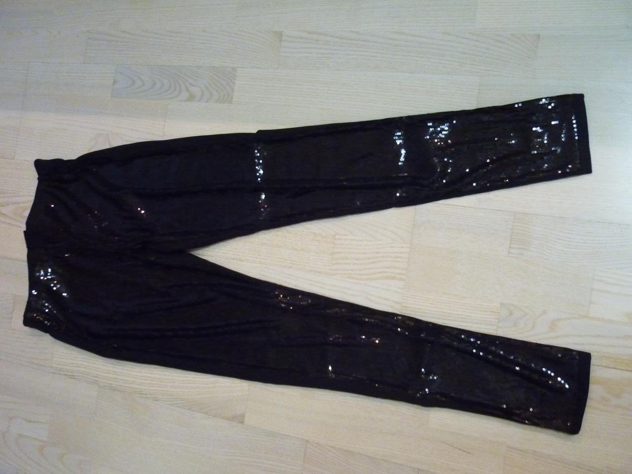 Продам леггинсы с пайетками НМ http://www.hm.com/de/product/61430?article=61430-A (цена сайта 20 евро) покупала через Marina 15, цвет чёрный, пайетки на леггинсах спереди, сзади нет, пояс эластичный, сзади на молнии, размер S, на бёдра 91-93см, лучше мерять. Новые, со всеми бирками, отдам за 300 грн.