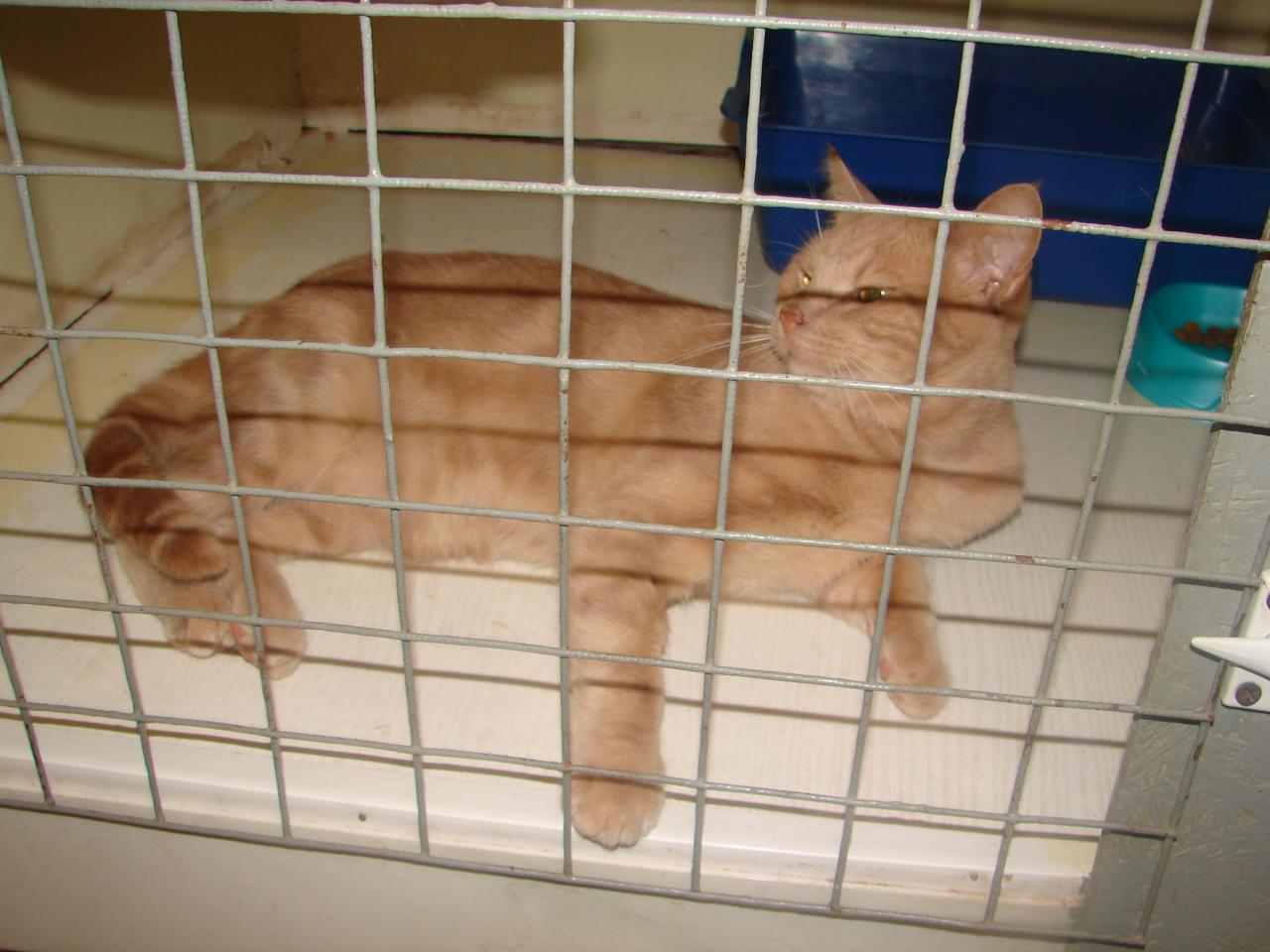 Персюша уже отрастил себе даже брюшко от того, что столько месяцев сидит в клетке, но стал такой спокойный после кастрации.