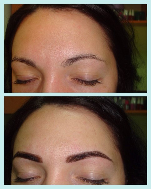 - Визуальное утолщение линии бровей.