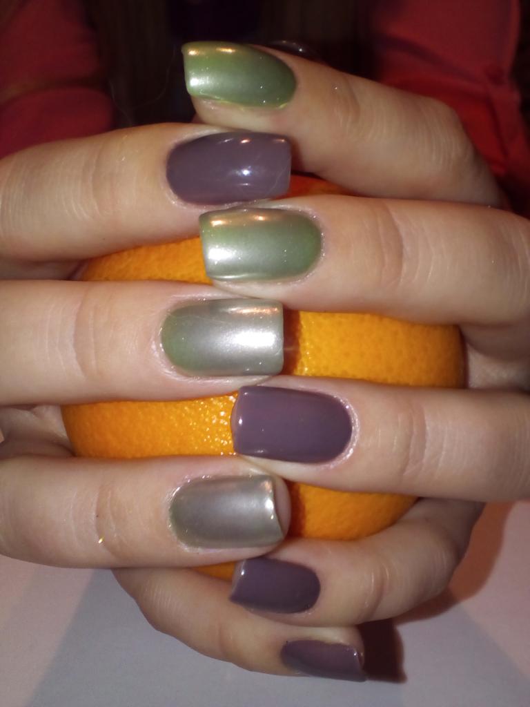 Стильный маникюр с зеркальной втиркой и лунный маникюр с розочками