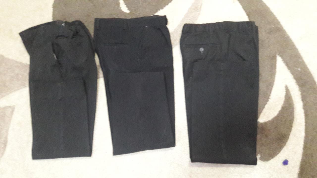 3. Брюки черные, б/у, состояние нормальное, тонкие, 100% хлопок, в поясе 42 см, длина 106 см, W 32 L 33 – на 1 кг сахара