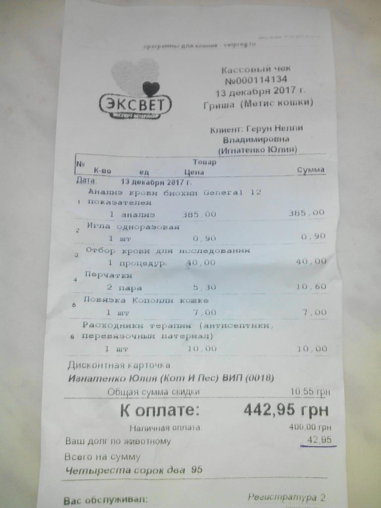 В 18.30 мне позвонили и сказали, что уже можно приезжать. Я нашла еще дома скидочную карту Айболита, по которой мы получили огромную скидку, аж 12 грн))) Вообщем денег нам хватило просто тютелька в тютельку, со скидкой потратили 641 грн.