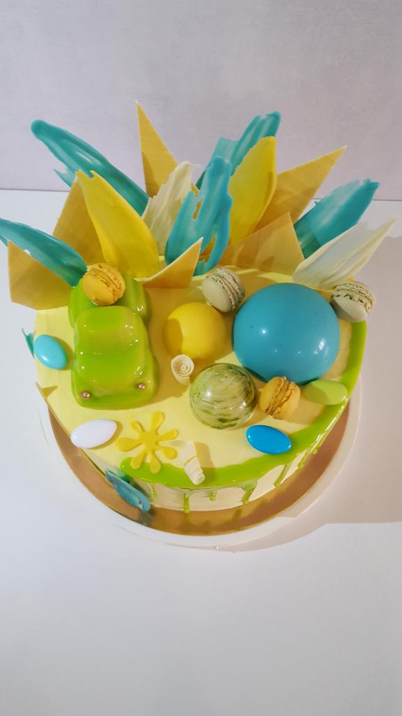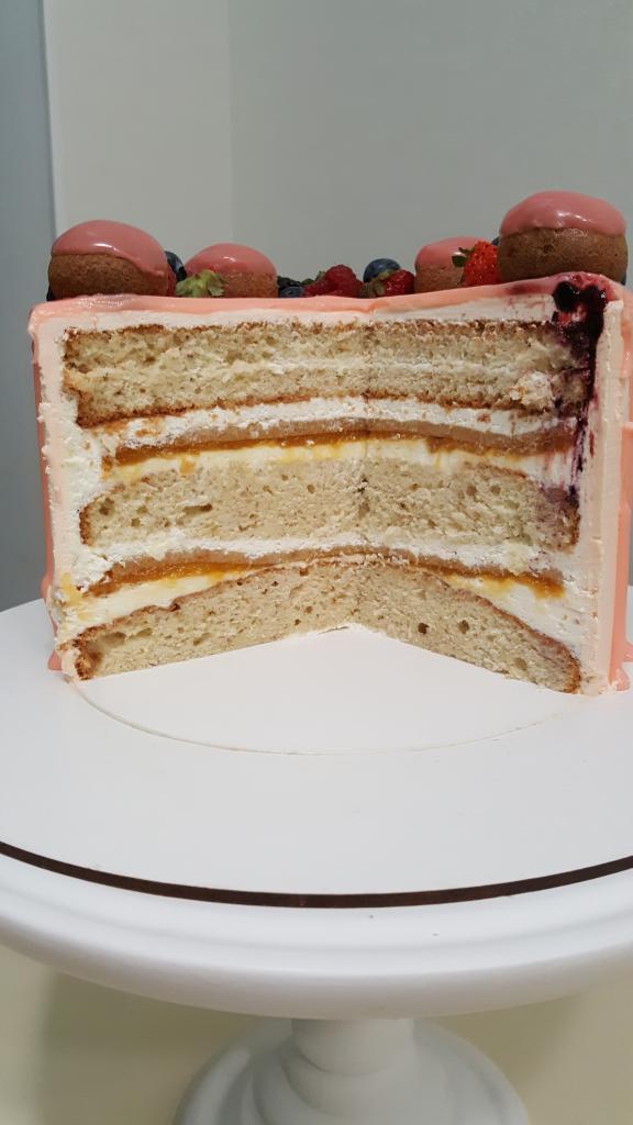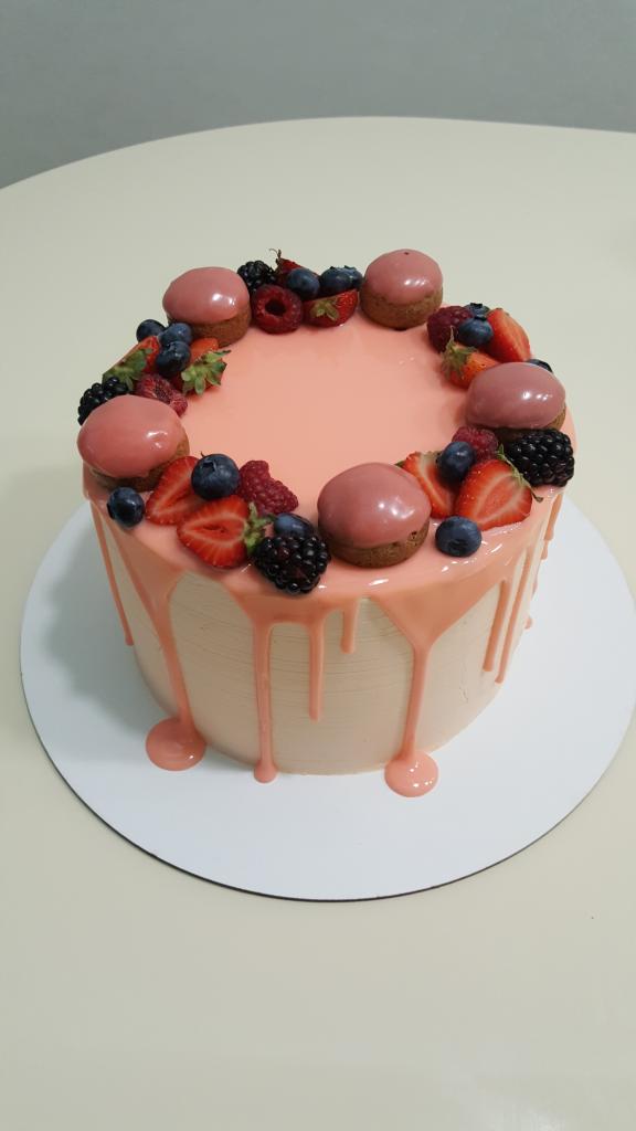 яркий бисквитный торт с малиной и малиновым конфи 26см 5,4кг