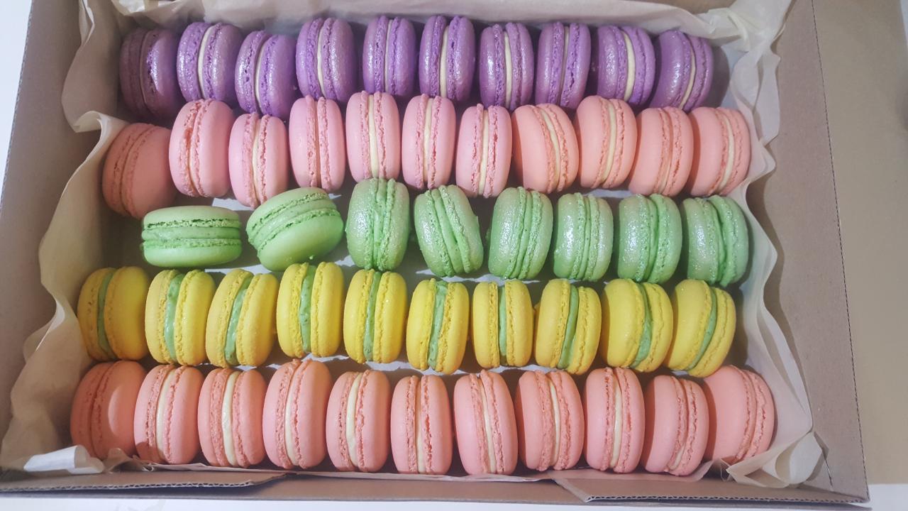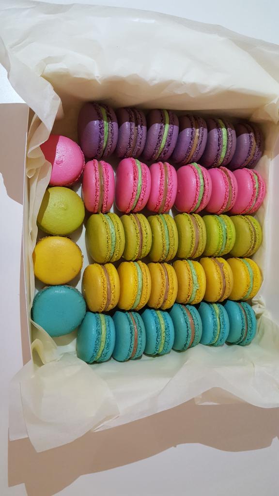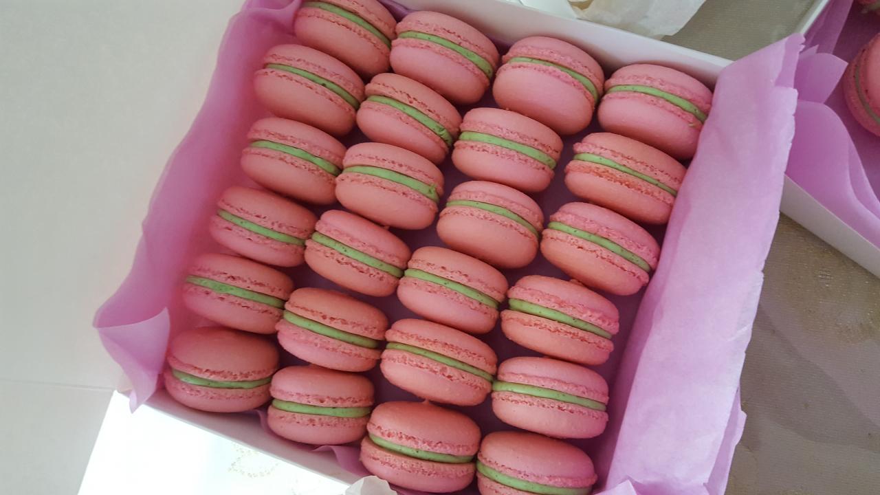 макаронс -ореховый крем,крем чиз с маракуйей,кокос с малиной
