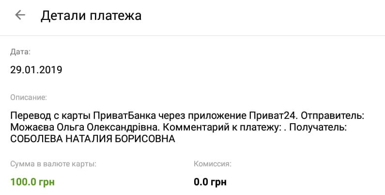 23.04.2019 г. поступил перевод от Юдицкой И.А. Огромное ей спасибо!!!!