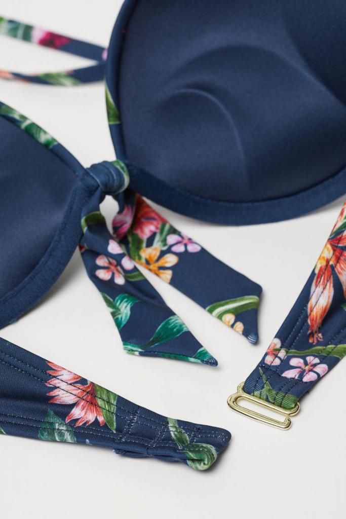 темно-синий с цветами ,верх 38В/85В супер пушап и плавки Cheeky Tie Bikini Bottoms размер EUR 40 -продается комплектом