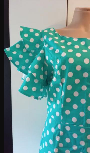 длина 61см, ширина 43см, длина рукава от плеча (без плеча) 40см, длина рукава до волана 22см, пояс 41см, длина от подмышки вниз по боковому шву 41см