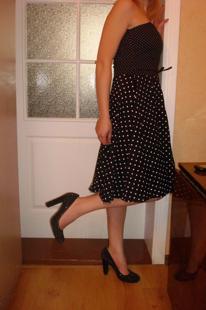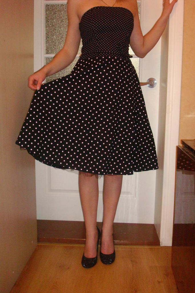 платье элегантно-веселенькое в розовый горошек.Хорошо подчеркивает фигурку(на небольшой бюстик).прокат 150 грн.продажа 700 грн