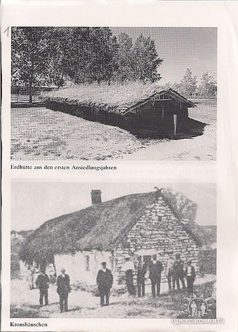 Вверху-в таких землянках жили первые переселенцы.Маленький домик под камышовой крышей