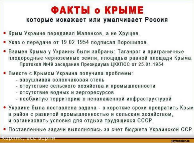 Так и Хрущев передал Украине, указ подписан был о вхождении Крыма в состав Украины. А в 91-ом подтвердили договором незыблемость границ!