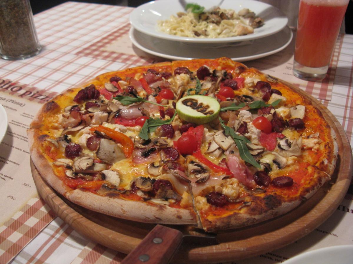 вчера были в Олио, смешанные чувства. кухня вкусная, их фирменная пицца ням-ням, см. фото, и феттучини с курицей и грибами вкусное, а вот официант ошибался несколько раз, приносил не то. если не помнишь - записывать надо!