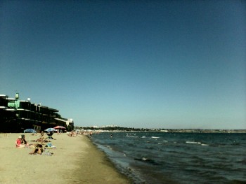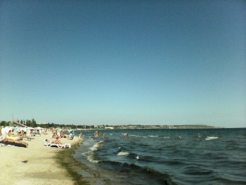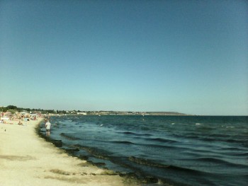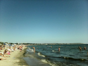 . С 14.00 до 17.00 ветер, волны, у берега мутно, много прибитых волной маленьких медузок, дальше чисто. Вода градусов 21-22, приятно-купательная. Людей мало, тихо и спокойно. Солнце изрядно припекает. Пляжно-морской сезон продолжается.