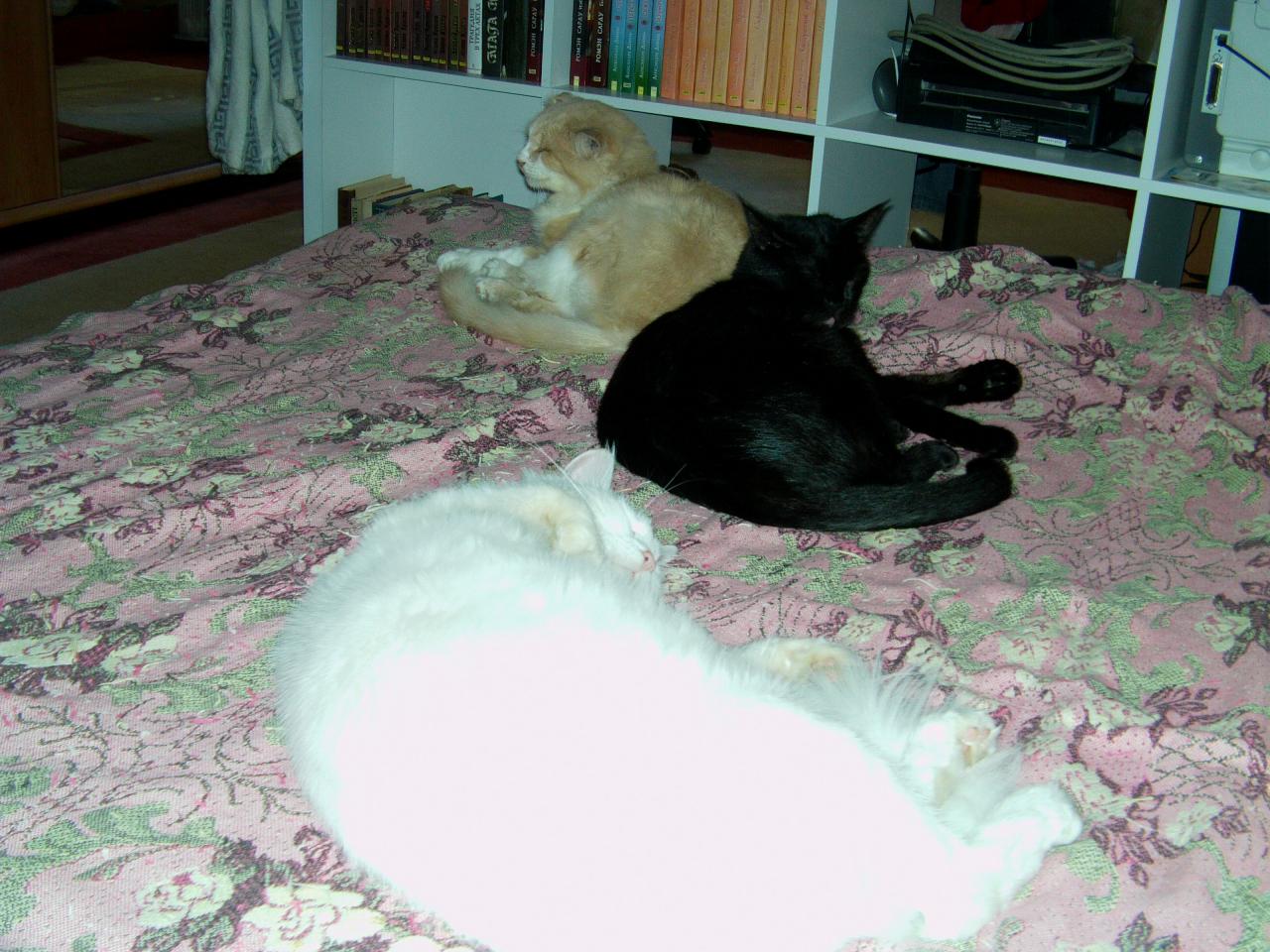 похолодало... коты потянулись на диван (все лето, в дневное время, я могла наблюдать за ними только из далека, пока они по соседским огородам шастали).. хорошо, когда все дома..![]()
