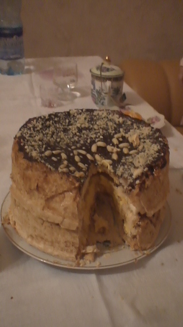 Сделала тортик с фундуком) видимо для этого торта нужны именно грецкие орехи и никакими другими их не заменить. Не судьба мне насладиться его настоящим вкусом, фундук слишком пресный. Но зато сегодня, тоесть 2 дня спустя торт стал очень вкусным
