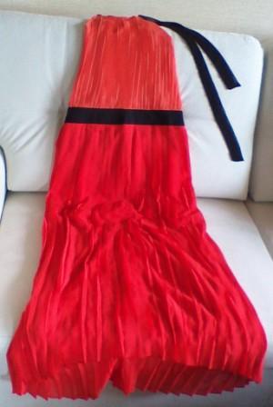 Продаётся новое очень красивое шифоновое платье, размер L, но будет на М, верх цвета коралл(двойной, поэтому не просвечивает), низ ярко красного цвета, все плиссированное, сзади низ платья длиннее, чем впереди (от талии - спереди 84 см, сзади 99 см), спинка открыта до талии, есть нижняя юбочка. Цвета ярче, чем на фото. Замеры: ПОТ 38 см. Покупали на закрытой распродаже www.ldeeli.com/.