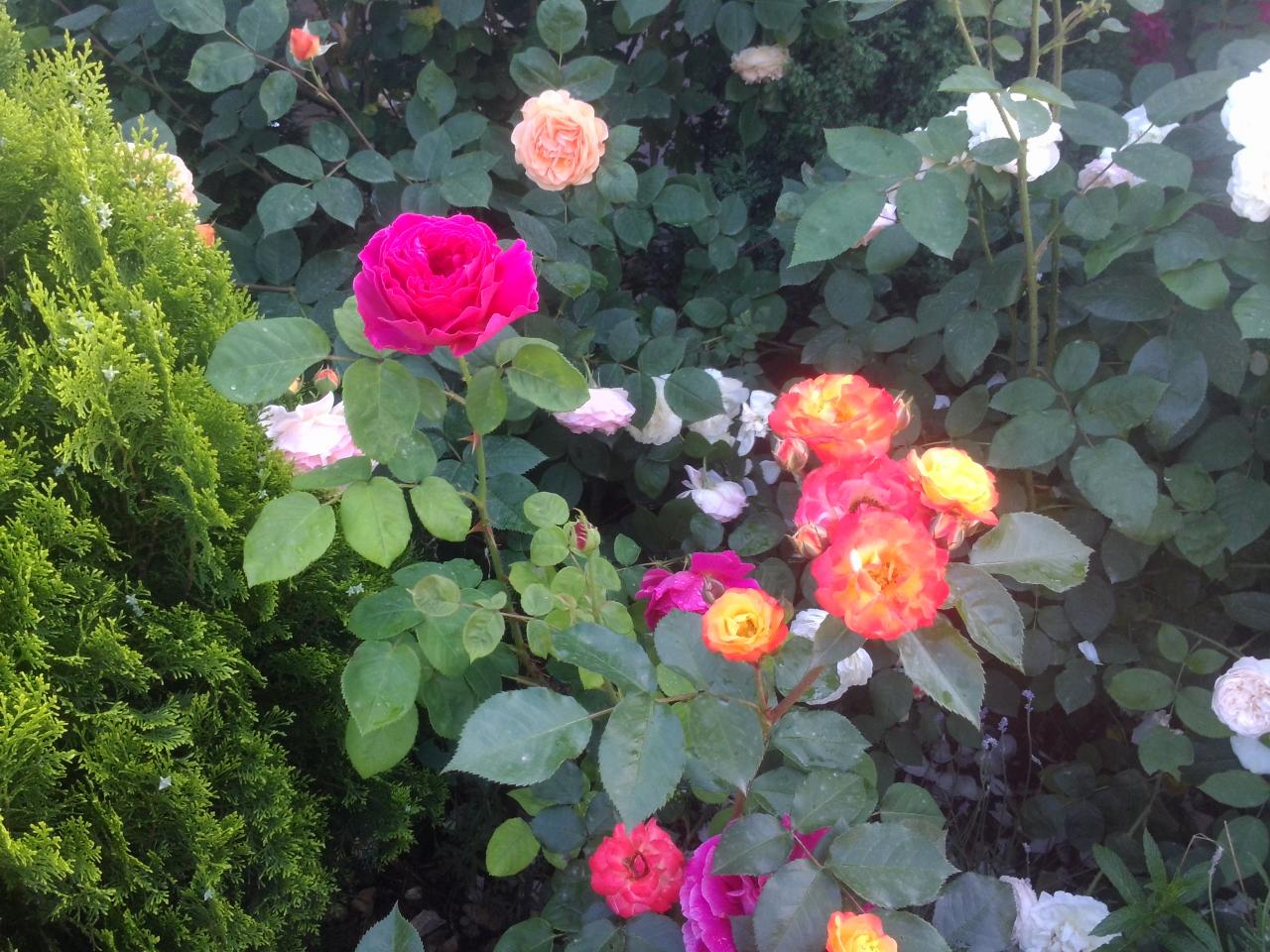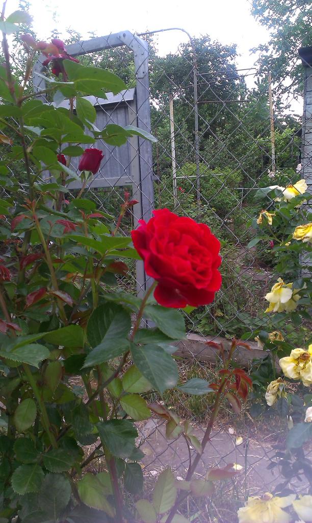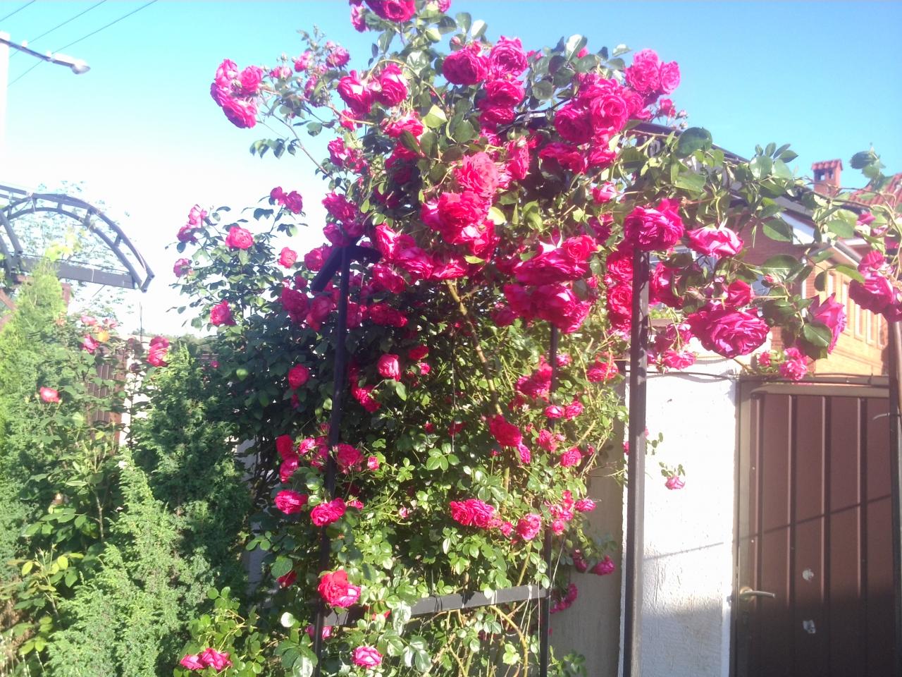 ну и я скромно добавлю. Мои розы почему-то в этом году подтормаживают. Вот арочка цвести начинает. Цветёт второе лето, цветки поразили, они просто огромные, величиной с тарелку, жаль, на фото этого не передает.Люди на улице все взглядами останавливаются)) В прошлом году не такие были, наверно из-за того, что кустик молодой был.