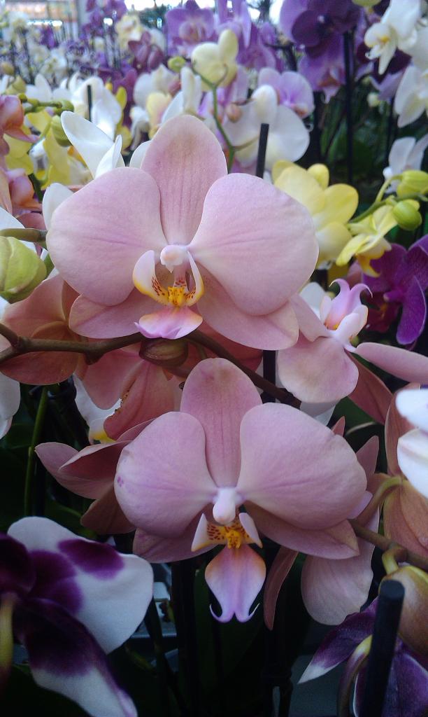 в Эпицентре 7 км, много орх видно к 8 марта завезли, кроме множества стандартных, сиреневых, белых, розовых, пятнистых и подобное были замечены симпатюли,на 1 цв -180, 2-260,