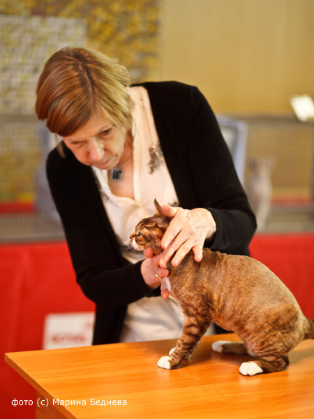 Вот так правильно смотреть профиль и "стоп" у девона. Не растягивая складку нос-лоб пальцами. Это выставка CFA в Москве, апрель 2013г.