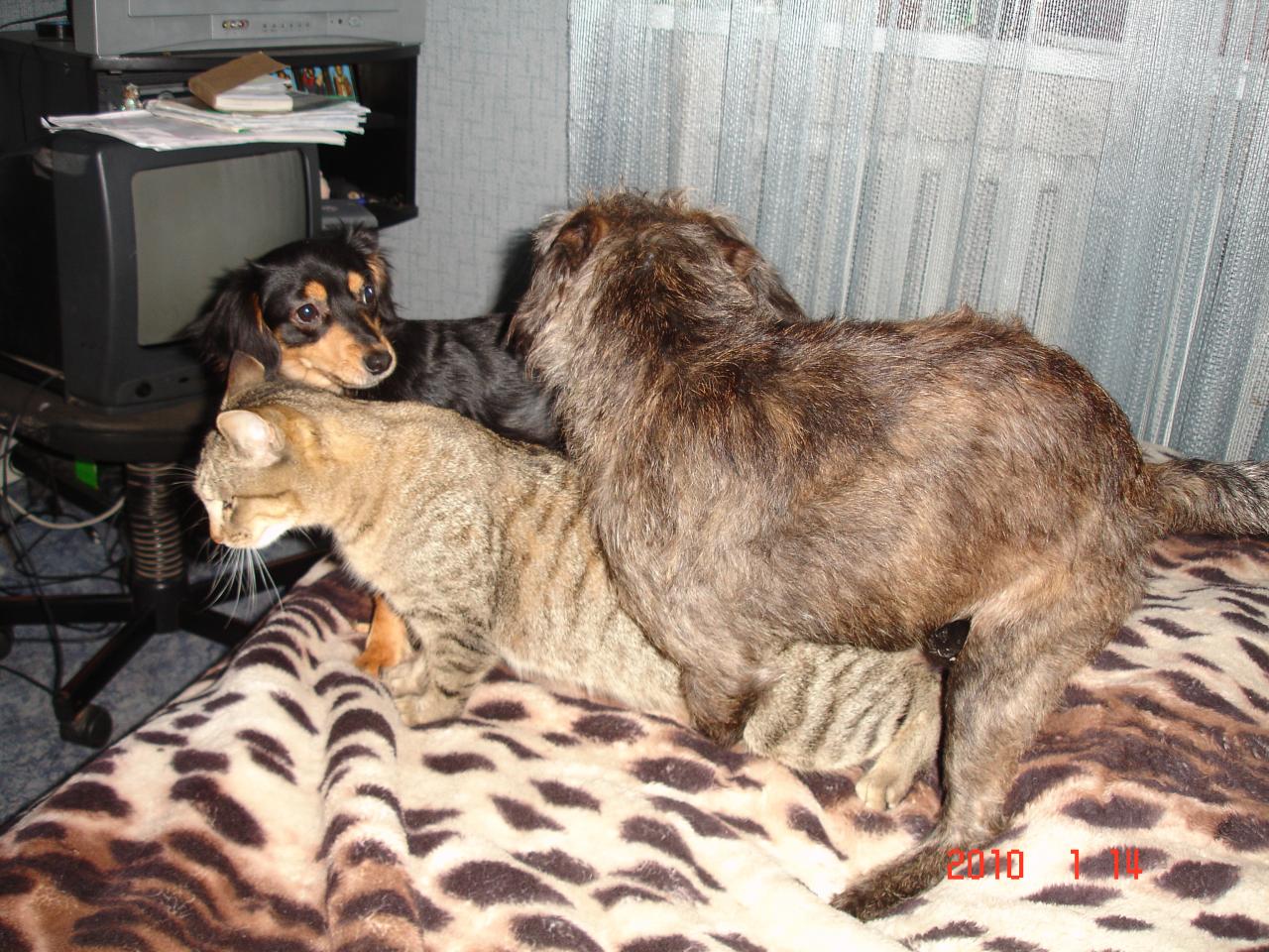 Что это у вас за оргии? Откуда они пример черпают? (шутка) вот уж пакостники - и кошку втянули)))))!