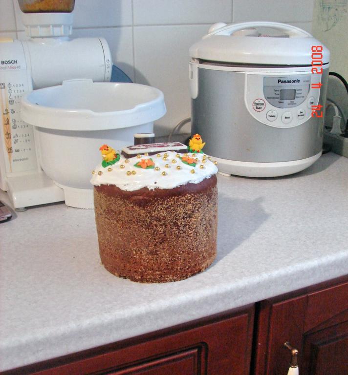 Когда остынет, смазать смесью белка с сахарной пудрой (белок должен быто холодный и на 3 белка - 1 стакан сахарной пудры).