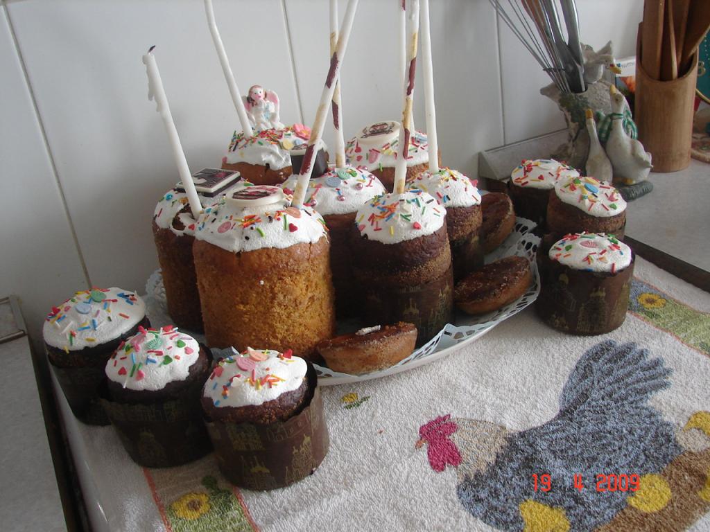 Выпеченные паски из формы (они довольно легко выходят, если форма была хорошо смазана и паска спеклась).