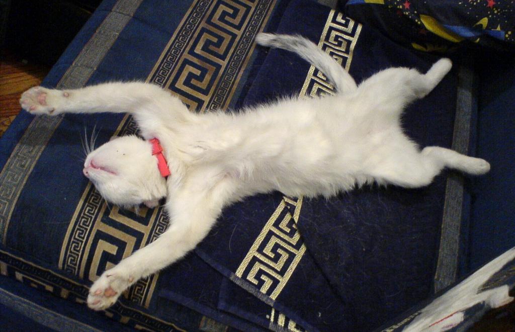 Вот так мои кошка Манька(беленькая) , кот Василии(черненький) любят спать...