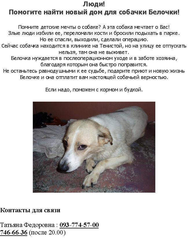 Помогите найти новый дом для собачки Белочки!