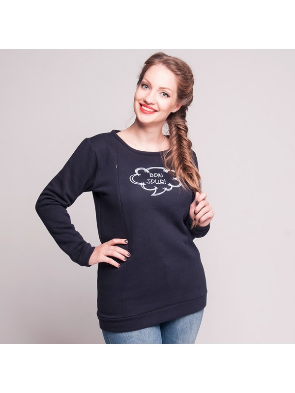 Кофта для беременных и кормящих 2 в 1" Love&Carry" - мастхэв для осенних и зимних прогулок! Удлиненный фасон поможет держать растущий животик в тепле. После рождения малыша, свитшот станет удобной одеждой для кормящих, а также прикроет поясницу от холодного ветра. Секрет для кормления в кофте для беременных - потайные молнии, спрятанные в швы.