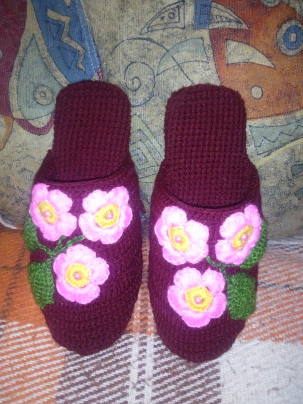 Вязаные тапочки 350 гр. Акрил 100%. внутри шерстяная стелька с отражателем. можно стирать в машине. Очень удобненько когда идешь в гости ,что бы не одевать чужие тапки. в сумке всегда есть свои.![]()