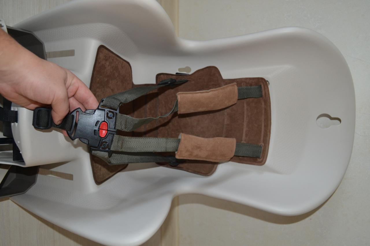 Нижняя часть велокресла наглухо закрепляется на багажнике при помощи фирменного крепления*