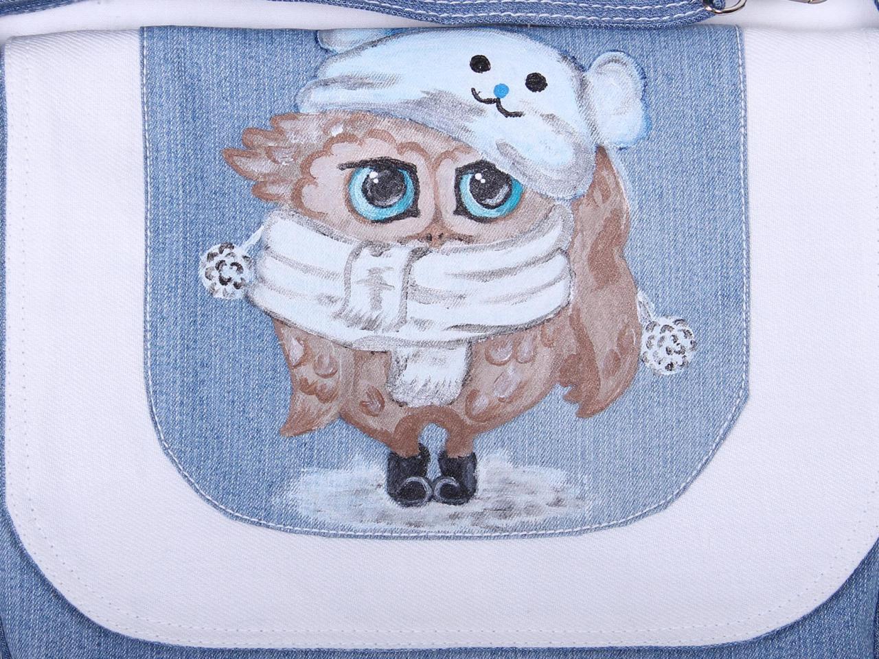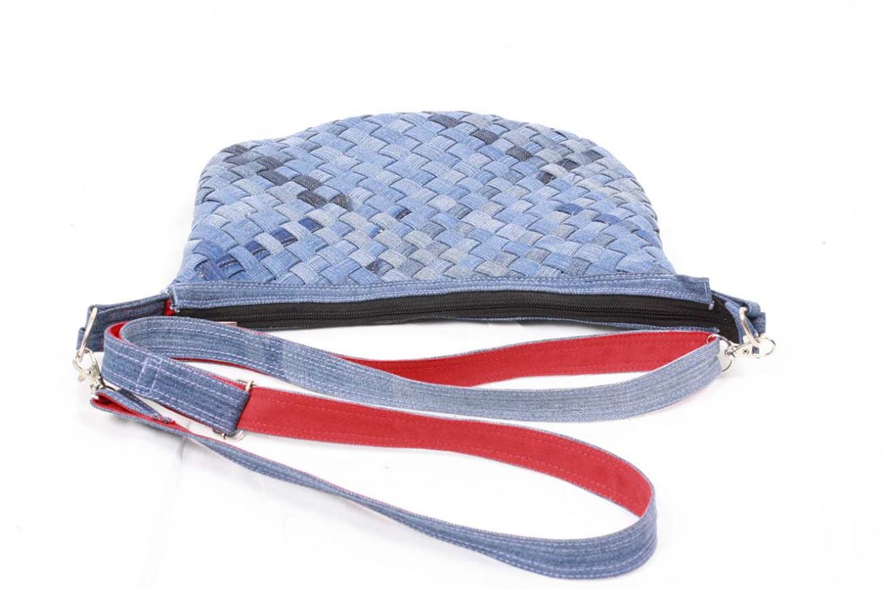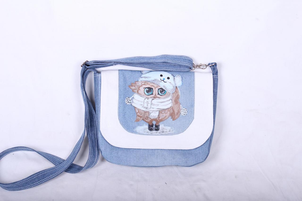 Материал Джинс, стенки сумки продублированы дублерином, что придает ей жесткости. Внутри одно отделение, есть карман для мобильного телефона, а также карман на для документов. Ремешок "через плечо", регулируемый. Закрывается на клапан с магнитной кнопкой.