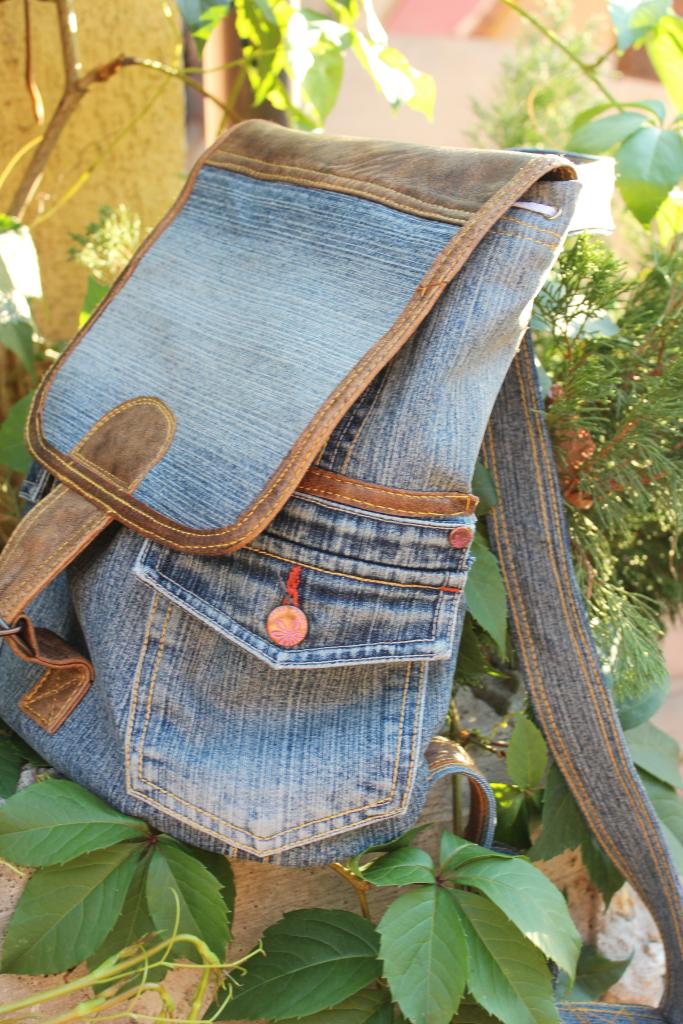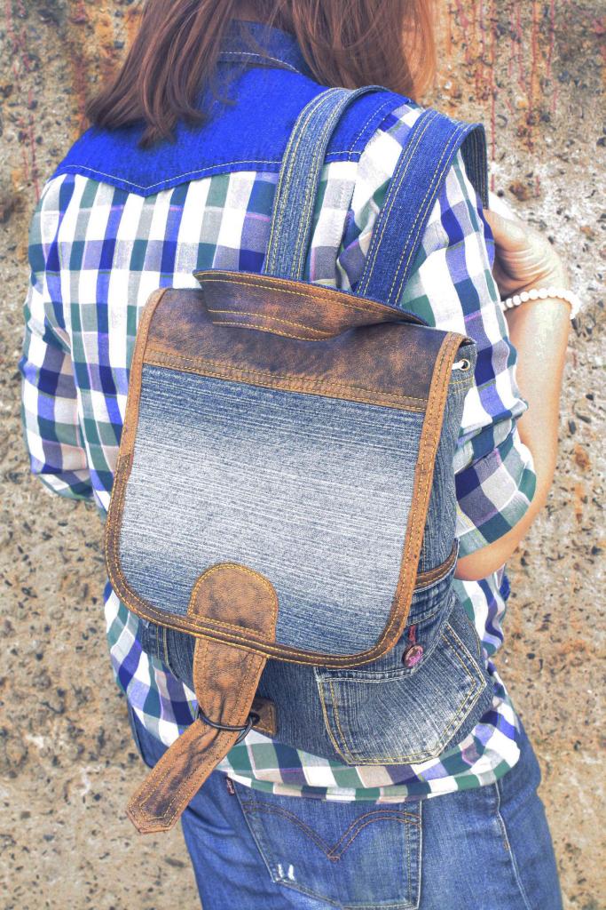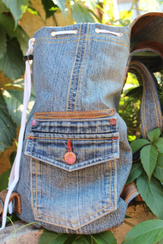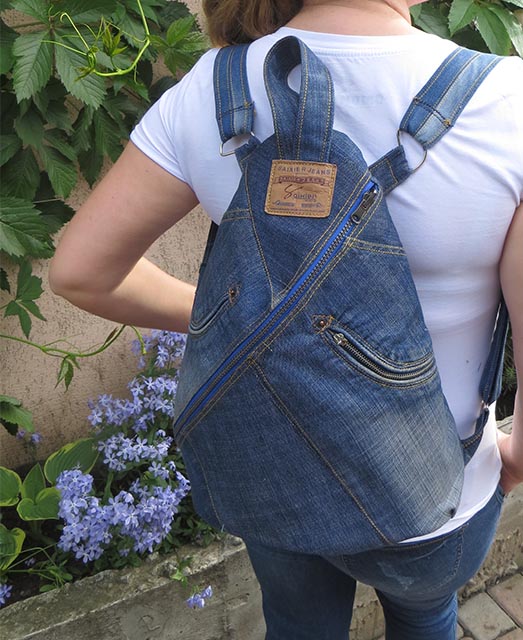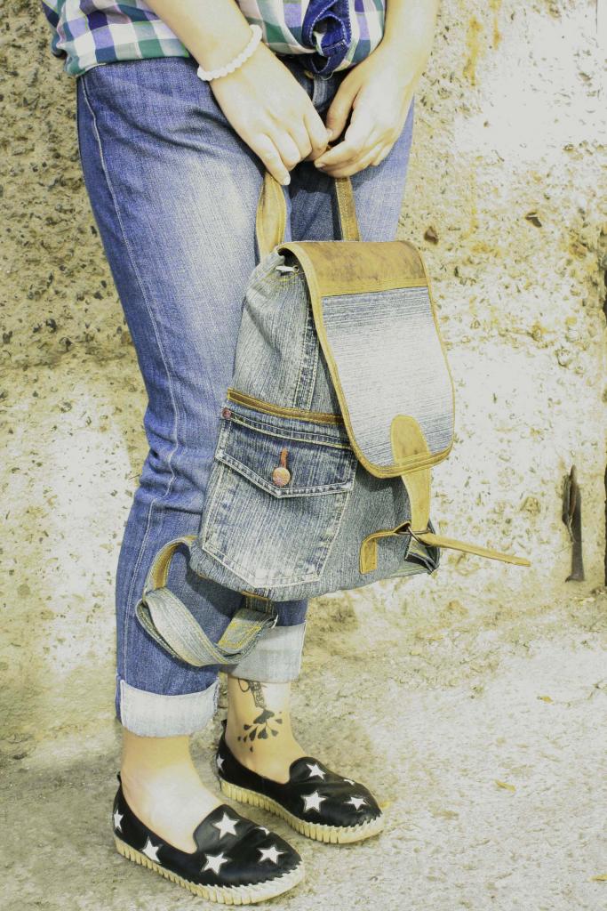 Дно и стенки рюкзака уплотнены дублерином. Для пошива необходимо две пары джинс.