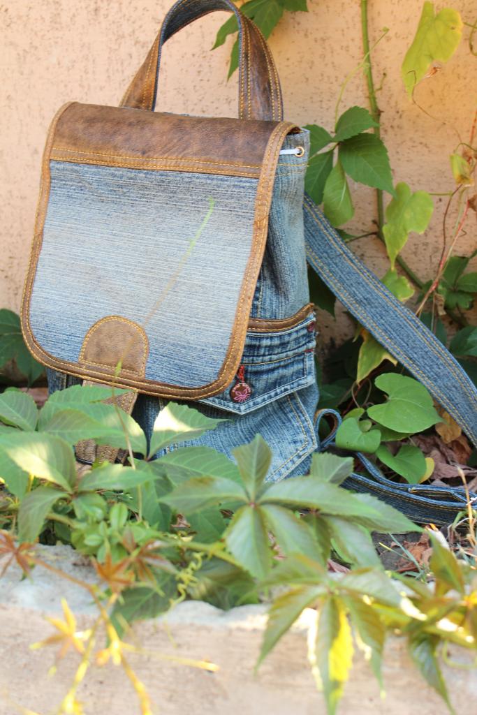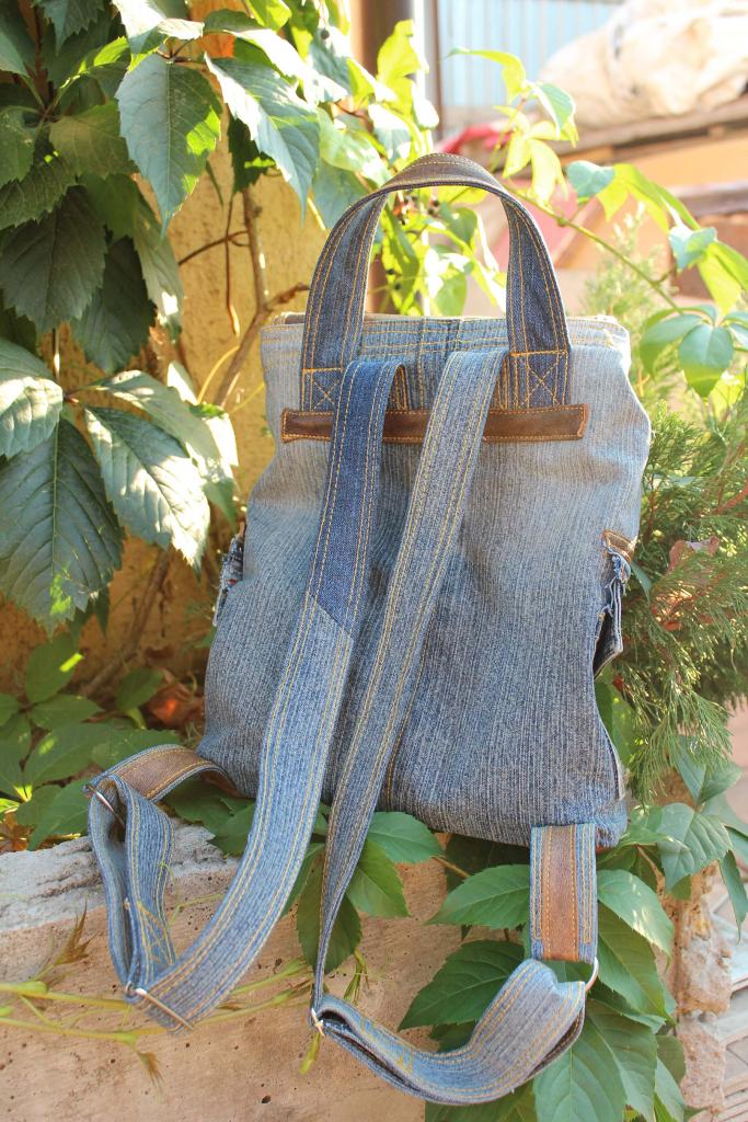 Размер 25х45 см, Стенки рюкзака уплотнены дублерином. Подклад - коттон, джинс также посажен на дублерин, что придает рюкзаку жесткости и красивую форму.