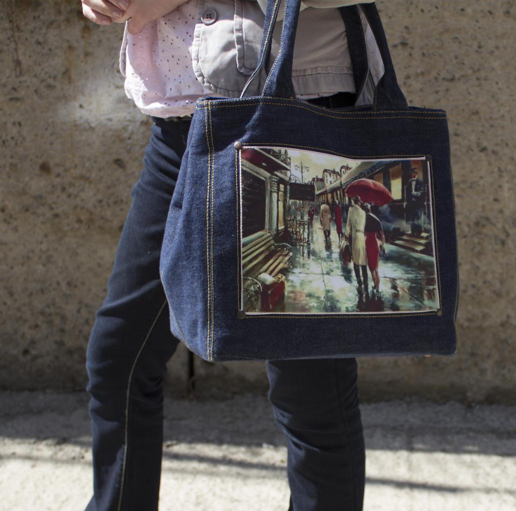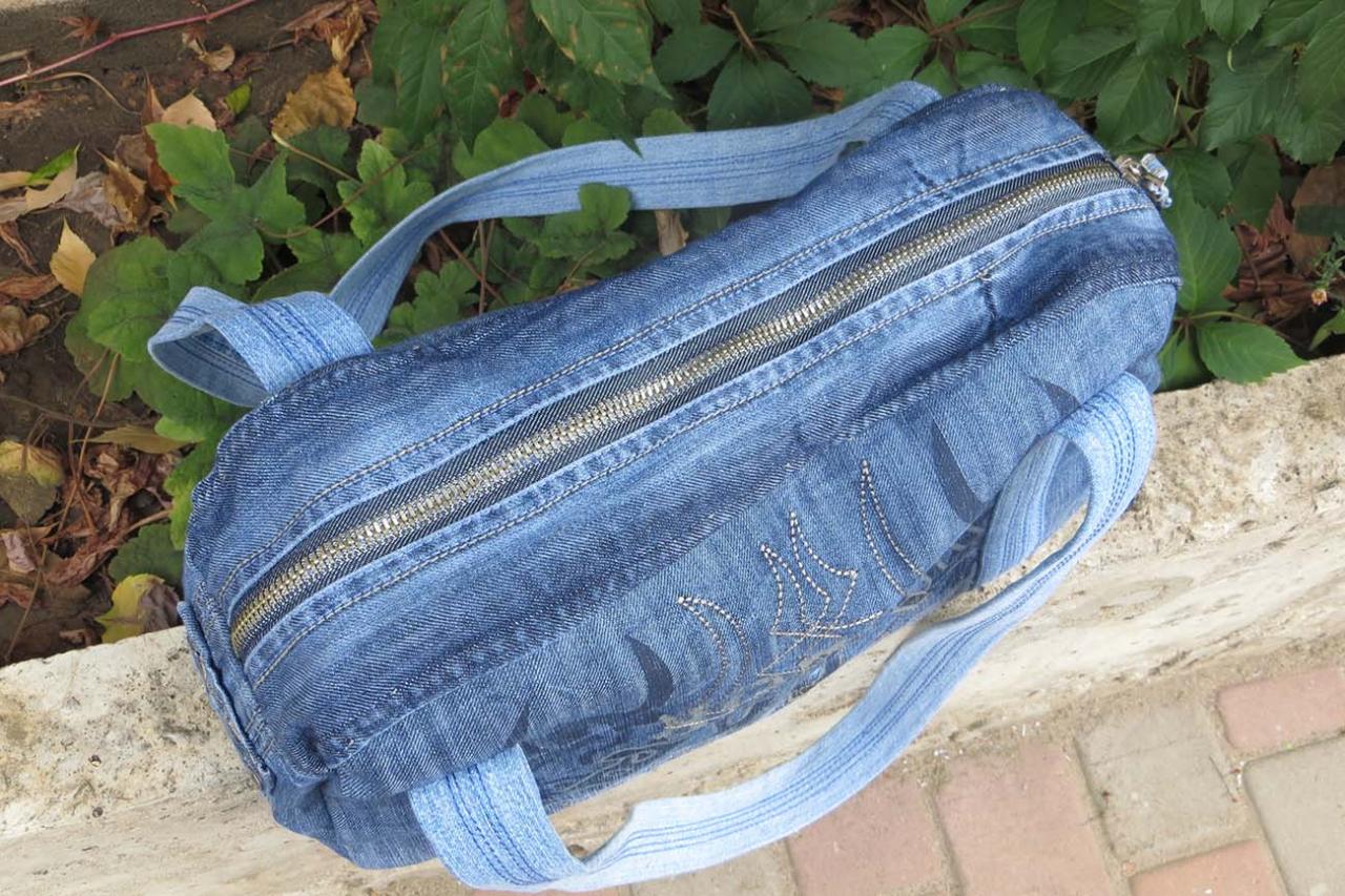 Материал - Джинс,стенки уплотнены дублерином, одно отделение, застегивается сумка на змейке.
