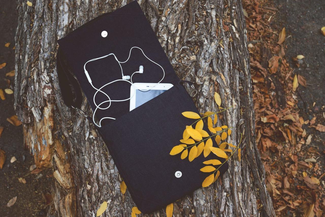 Материал - джинс, черный, закрывается на клапан с магнитной кнопкой.