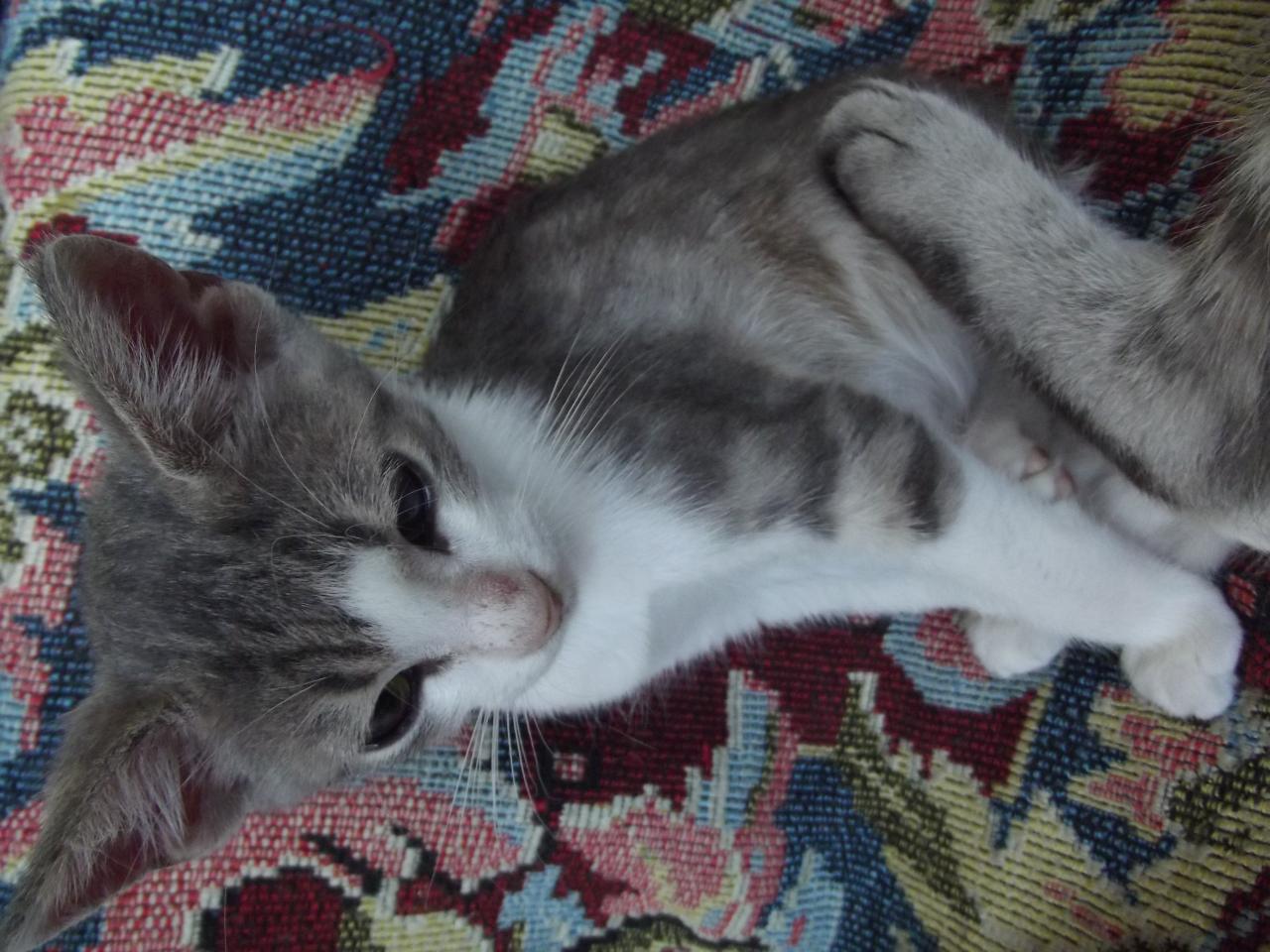 за то время что он тут есть подвижки - он стал не такой нервный и истеричный, иногда мимо котиков умудряется пройти без шипения, стал мурчать. умница такой - понимает что говорят, правда громкий, непривычно - наши шубки все молчуны, а тут дом наполнен громким "мама-мама", так он мяучит))