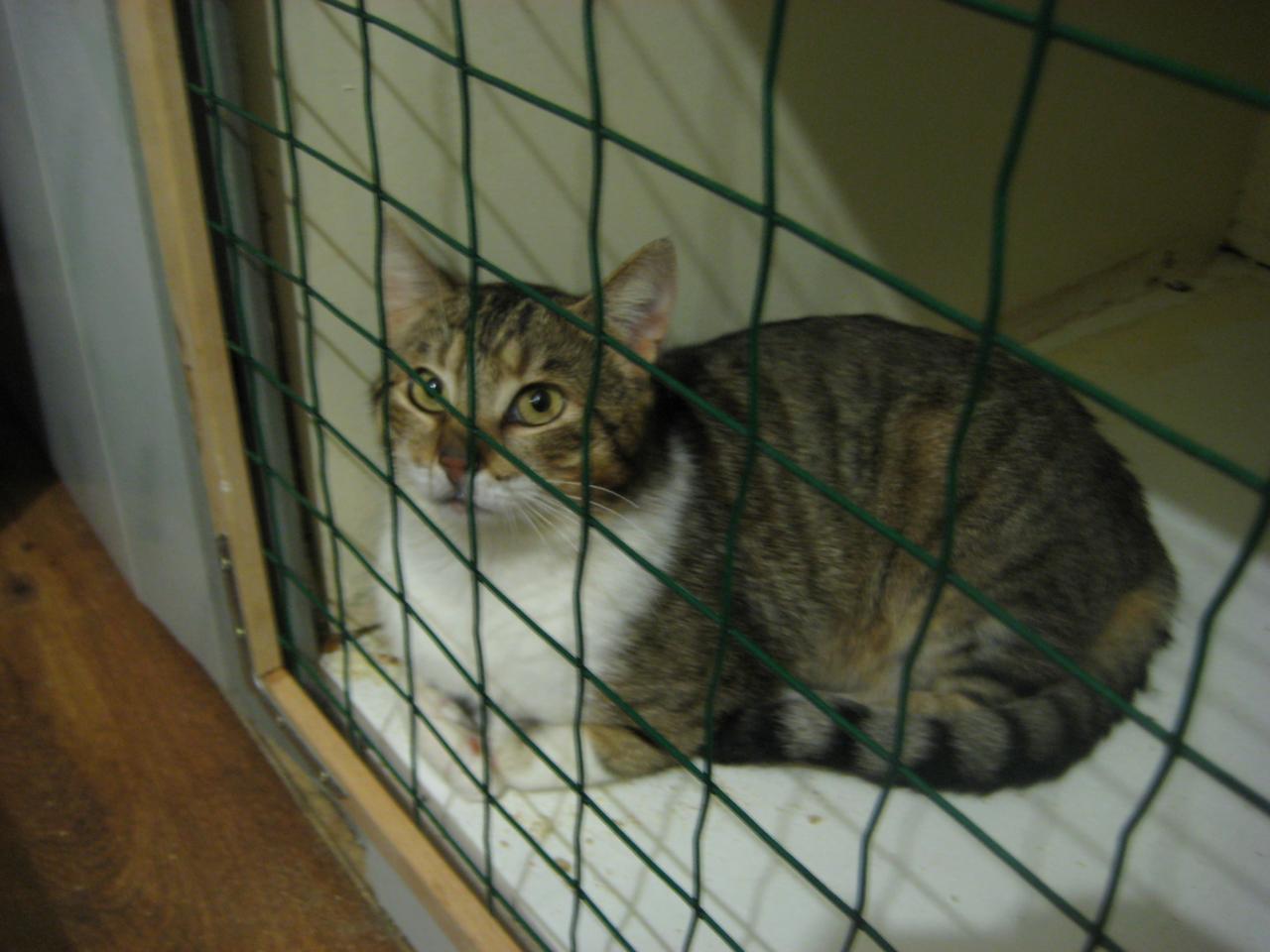 Потом Наташа вышла встречать новую кошку и в это время я немного пофоткала Моню. Потом пришли Света Верджиния с кошечкой в переноске и Моню пришлось закрыть в клетку. Он там тихо сидел и внимательно следил за тем как в клетку над ним поселяли новую кошку, разглядывал людей.
